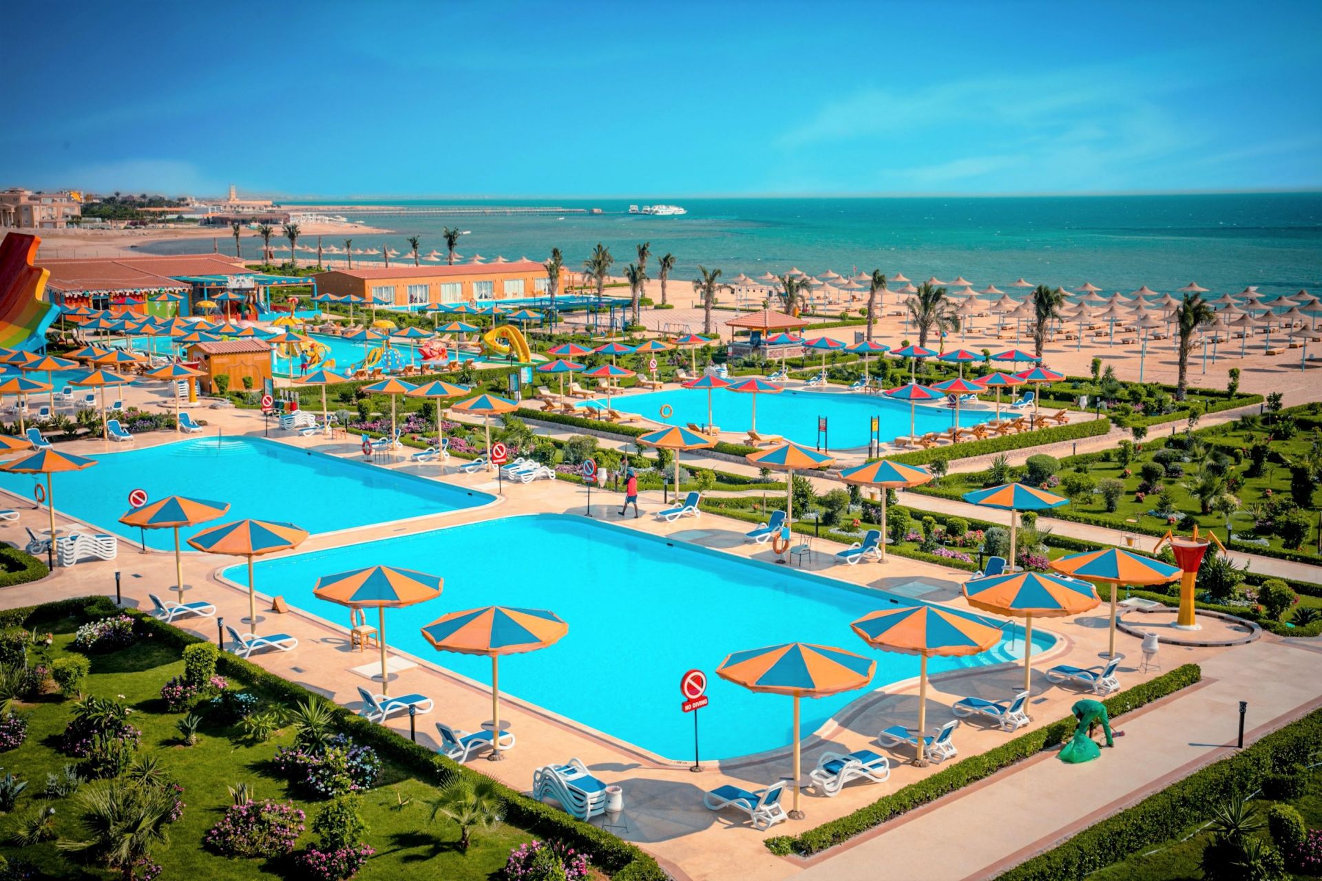 Основен ресторант, 2 а-ла-карт ресторанта – азиатски и рибен, 5 бара, дискотека, 5 открити басейна, аквапарк с 10 пързалки за възрастни и 14 пързалки за деца, СПА център, фитнес, конферетна зала, магазини, Wi-Fi (в лобито).