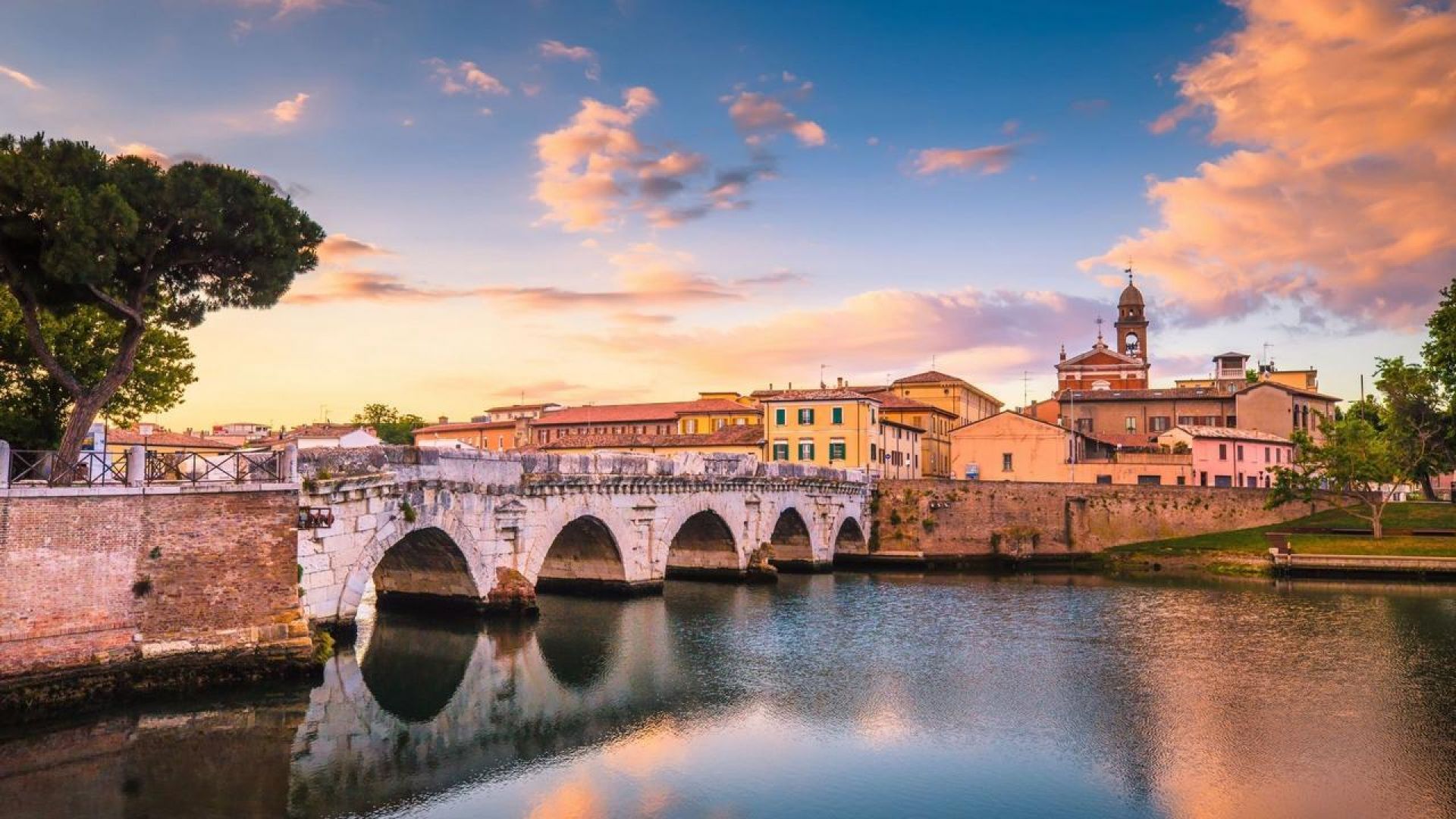 Разходката продължава през площад „Тре Мартири“, където романтиката на града се усеща най-силно - любимо място за срещи и разговори. Ще се разходите из стария рибен пазар, ще минете по величествения Мост на Тиберий, построен от римляните преди повече от 2000 години, и ще завършите по уличката на Фелини, вдъхновена от великия режисьор, роден именно в Римини.