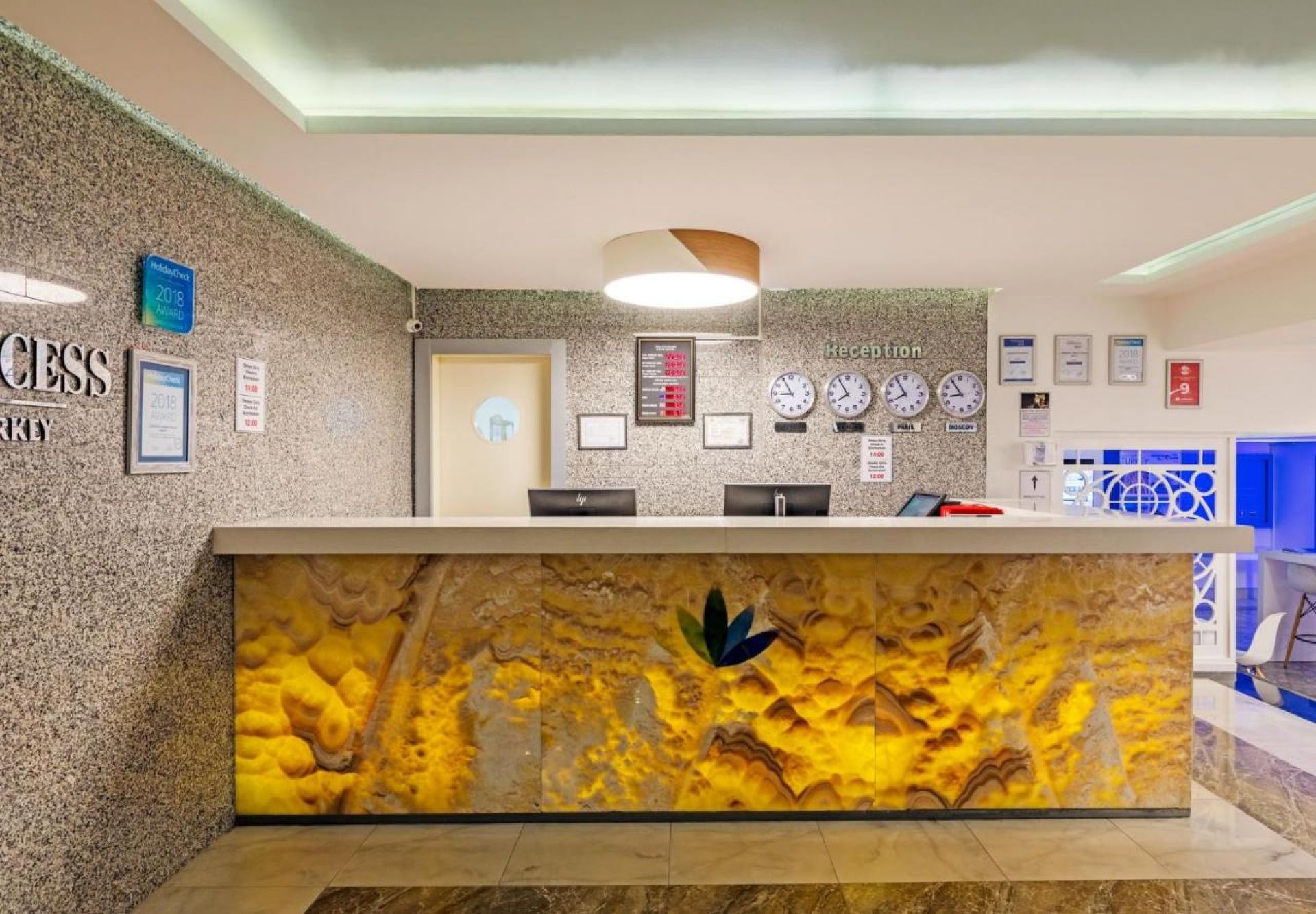 Основен ресторант, 2 а-ла-карт ресторанта (италиански и рибен), 4 бара, открит басейн, детски басейн, СПА център, сауна, фитнес салон, тенис на корт, тенис на маса, магазини, паркинг.