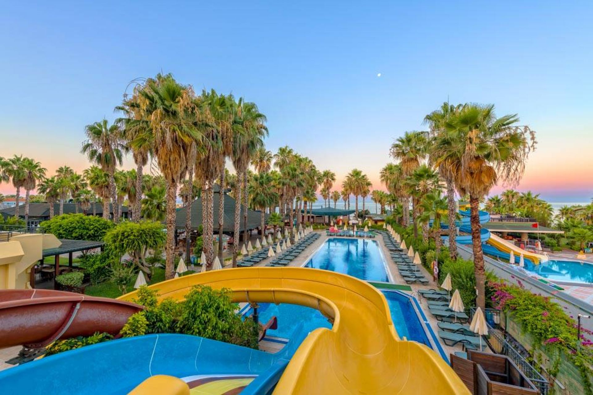 Основен ресторант, а-ла-карт ресторант, 5 бара, 3 открити басейна, водни пързалки, фитнес, СПА център с вътрешен отопляем басейн, магазини, Wi-fi интернет (платено).