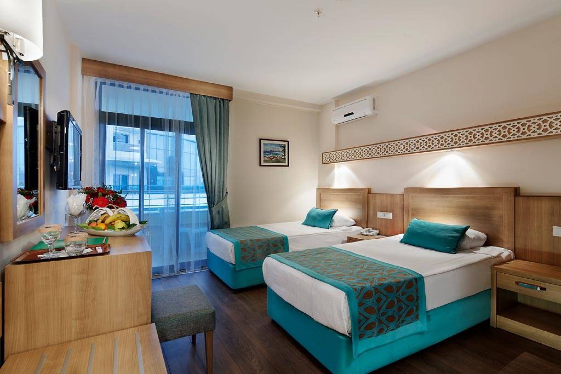 Хотелът разполага с общо 370 стаи, сред които: Standard Room (20 - 24 m2), Family Room (40 m2) и Suite (44 m2). Всички стаи са оборудвани климатик, телевизор, телефон, баня с душ, сешоар, минибар (разхладителни напитки – безплатно) , сет за приготвяне на чай/кафе, сейф (платено), балкон. Почистване на стаите и смяна на кърпите - всеки ден, смяна на спалното бельо – 3 пъти седмично.