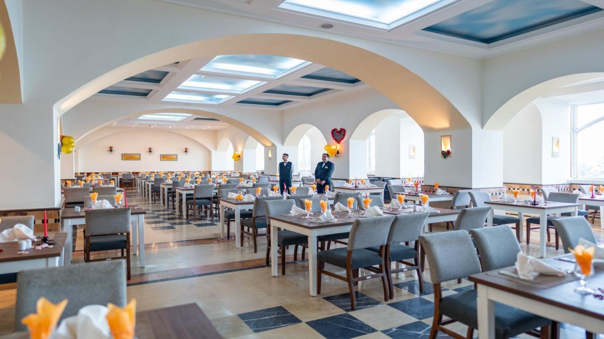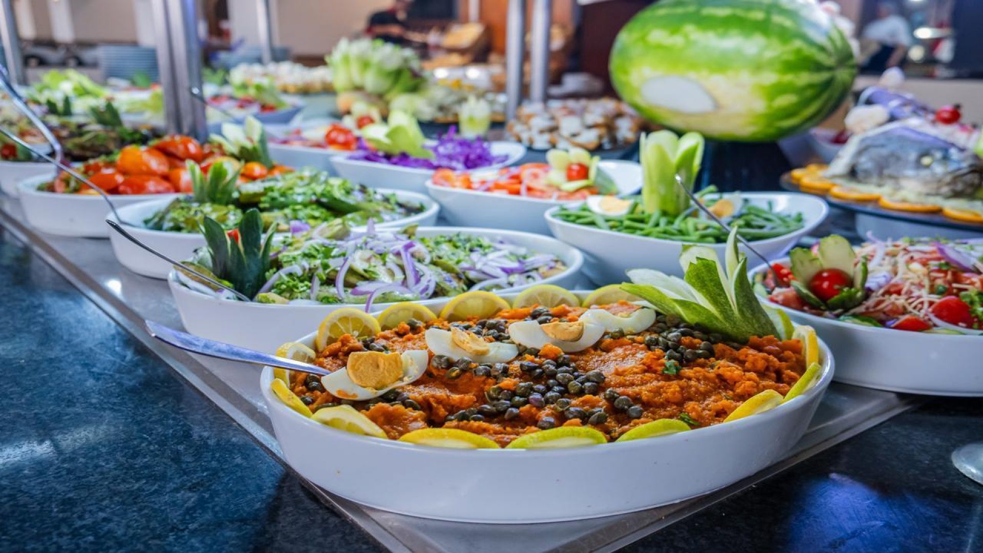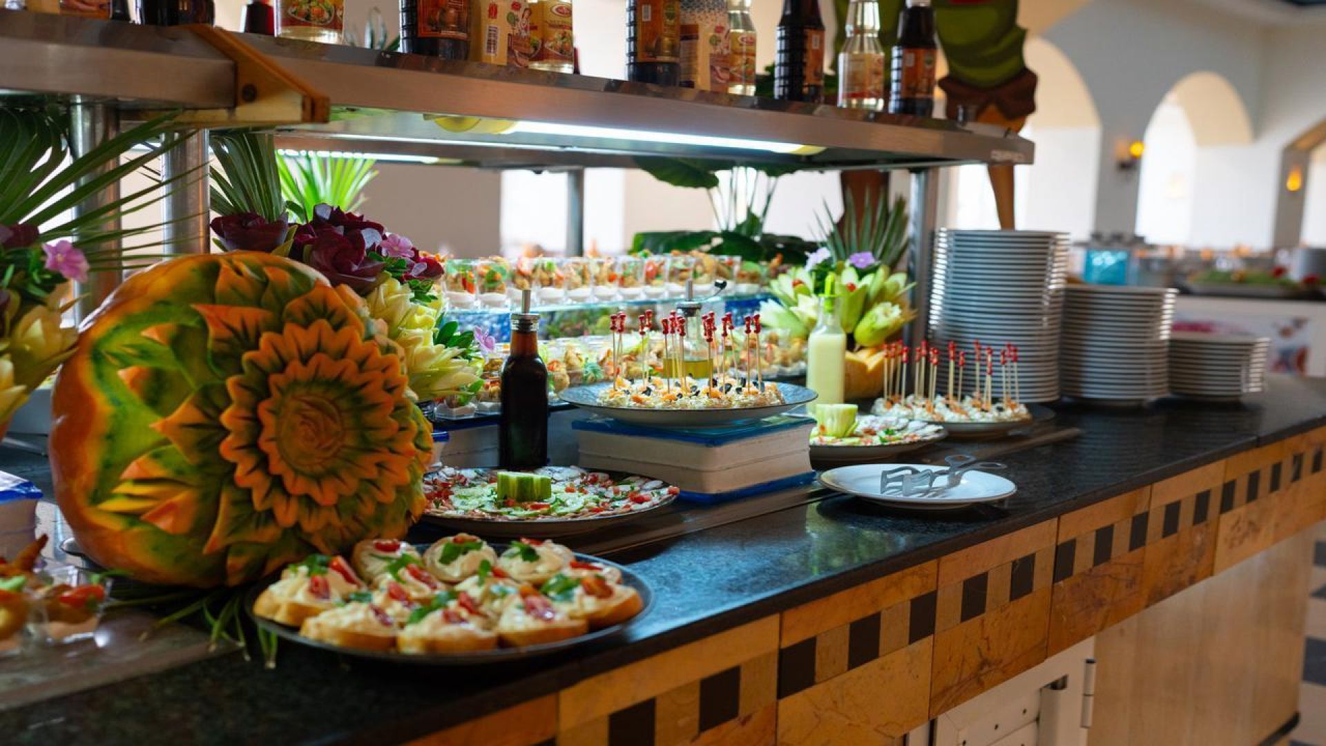 Основен ресторант – Основният ресторант предлага луксозно съчетание от източна и средиземноморска кухня. Сервира ястия за закуска, обяд и вечеря.